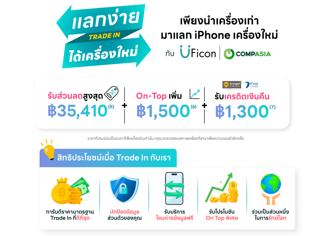 (6) On Top เพิ่ม 1,500 บาท สำหรับลูกค้าที่นำ iPhone รุ่นที่ร่วมรายการ มา Trade In กับ CompAsia