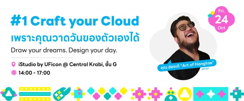 #1 Craft your Cloud เพราะคุณวาดวันของตัวเองได้Draw your dreams. Design your day.โดย คุณฮ่องเต้ – Art of Hongtae 🎨🕐 เวลา 14:00–15:00 น.