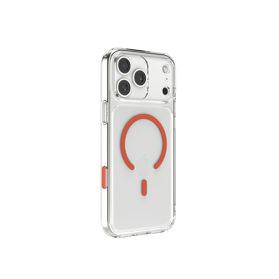 เคส JTLEGEND Casing for iPhone 17 Pro (6.3 inch) Hybrid Cushion Mag Case-G (Camera Control Button)- Crystal Clear with Orange Magnetic