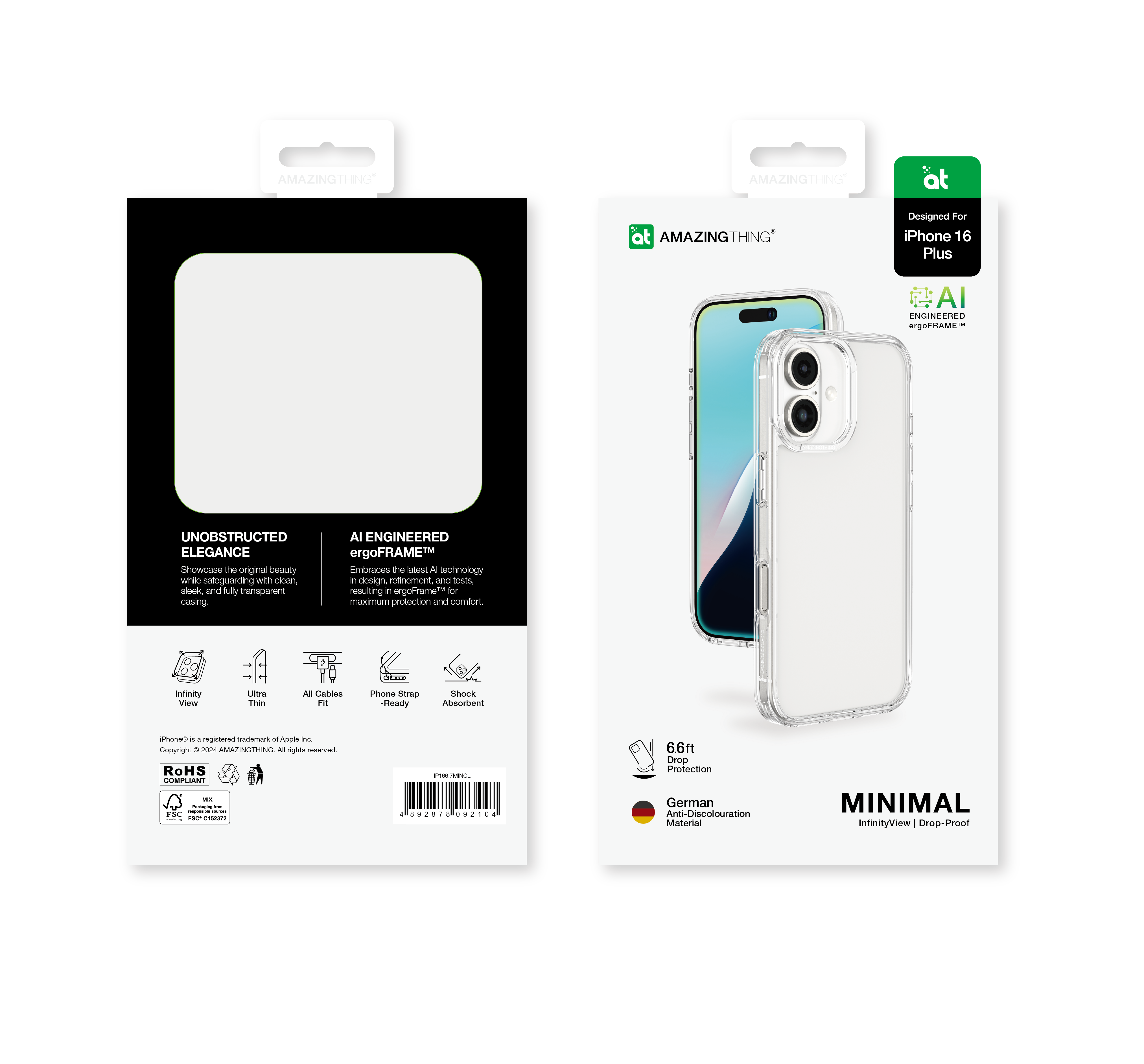 AMAZINGTHING Casing for iPhone 16 (6.1 inch) Minimal Drop proof case- Transparent