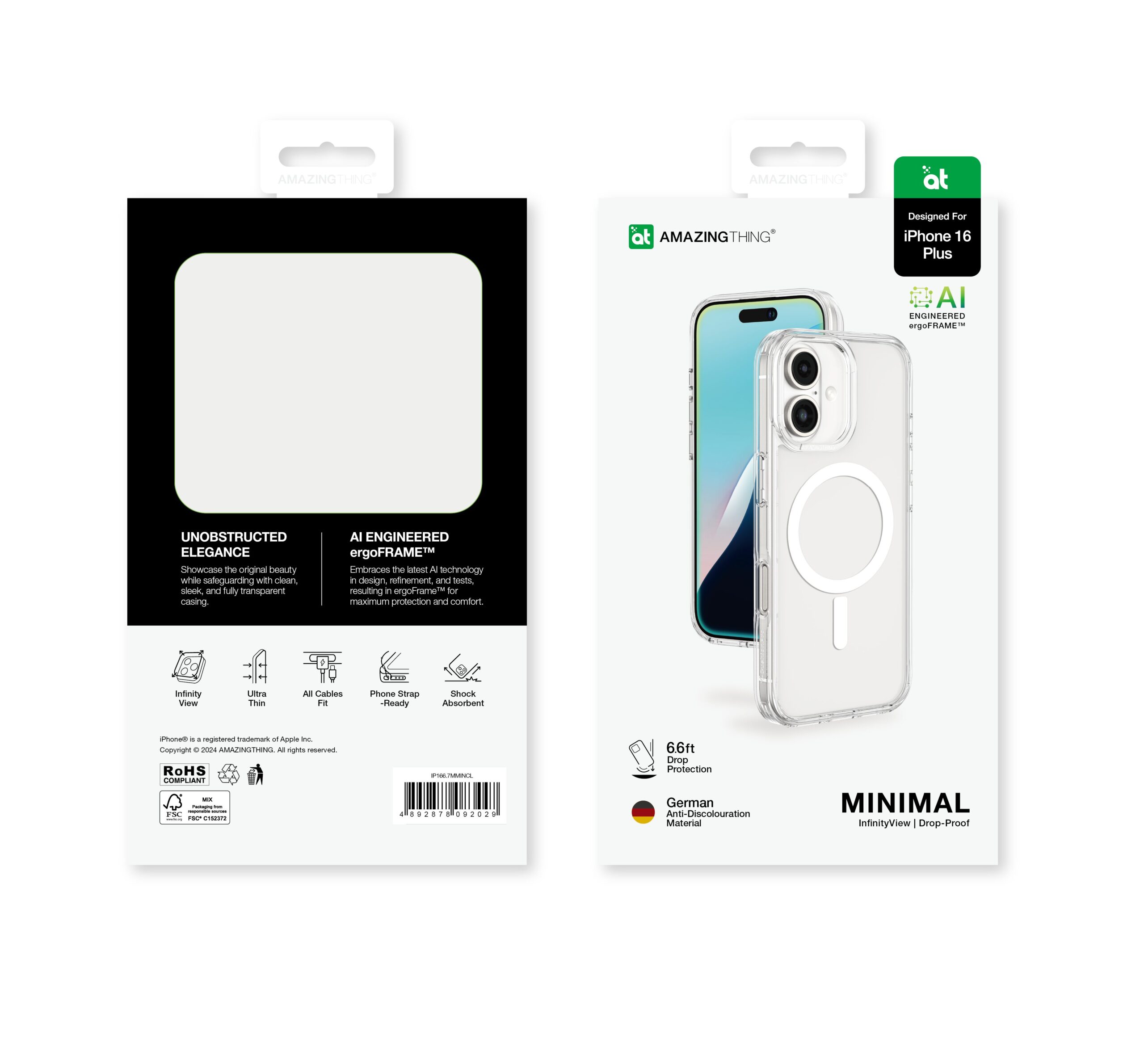 AMAZINGTHING Casing for iPhone 16 (6.1 inch) Minimal Magsafe Drop proof case- Transparent