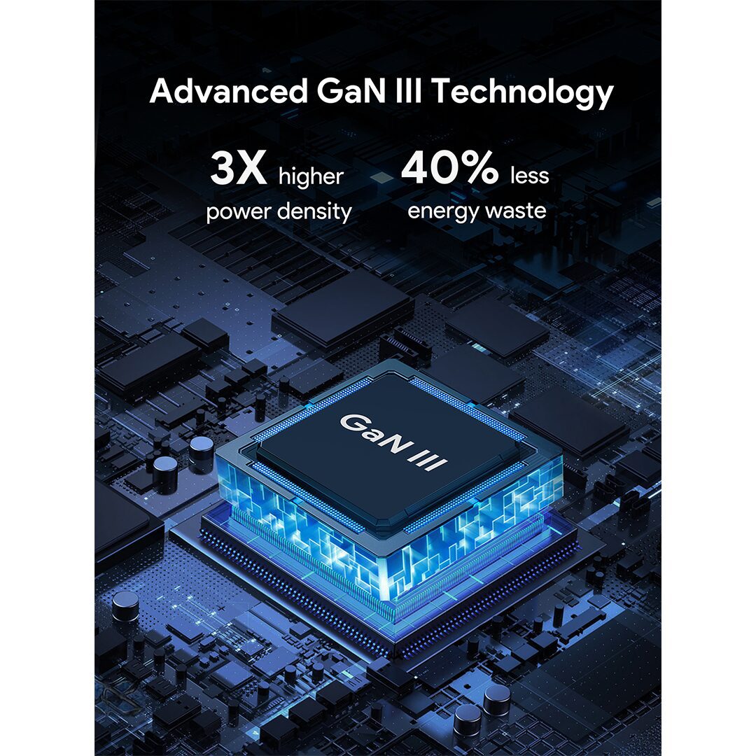หัวปลั๊กชาร์จเร็ว Power Delivery 140W เทคโนโลยี GaN III ใหม่ล่าสุด ที่ช่วยเพิ่มประสิทธิภาพการจ่ายพลังงานถึง 3 เท่า และลดการสูญเสียพลังงานลงถึง 40% ป้องกันไฟเกิน กระแสไฟฟ้าลัดวงจร และความร้อนสูง