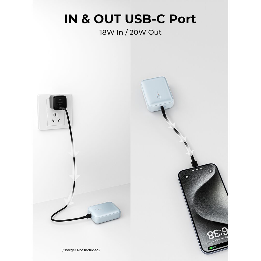 พาวเวอร์แบงค์รุ่นใหม่ 10000 mAh ขนาดเล็กกว่าบัตรเครดิต กะทัดรัด น้ำหนักเบา ช่อง USB-C จำนวน 1 ช่อง จ่ายกระแสไฟรวมสูงสุด 20W ด้วยเทคโนโลยี Power Delivery ชาร์จเร็วเต็มประสิทธิภาพ และ ช่อง USB-A จำนวน 1 ช่อง จ่ายกระแสไฟรวมสูงสุด 22.5W ด้วยเทคโนโลยี SCP Fast Charge Protocol ชาร์จมือถือเร็วขึ้นอย่างแน่นอน