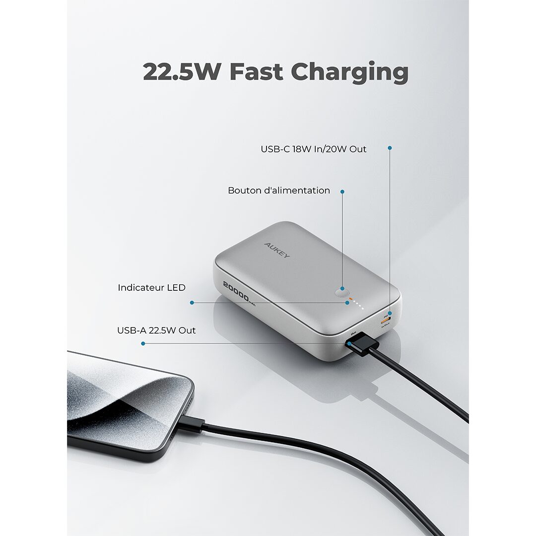 AUKEY PB-Y57 Spark Mini 20000mAh 20W Compact Fast Charging Power Bank Blue