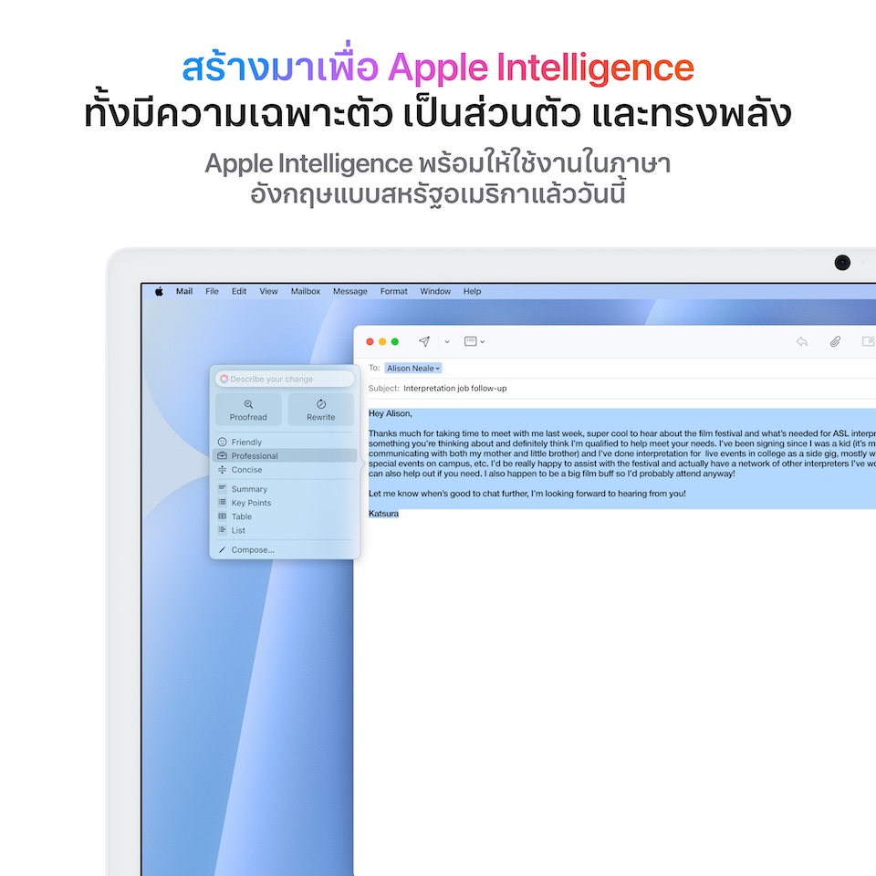 - อัดฉีดพลังแรงโดยชิป M4 — ทำอะไรๆ ให้เสร็จเรียบร้อยได้มากขึ้นด้วยชิป Apple M4 ไม่ว่าจะเป็นการปรับแต่งรูปภาพ การสร้างงานนำเสนอ หรือการเล่นเกม คุณก็สามารถทำงานและเล่นสนุกได้แบบสบายๆ