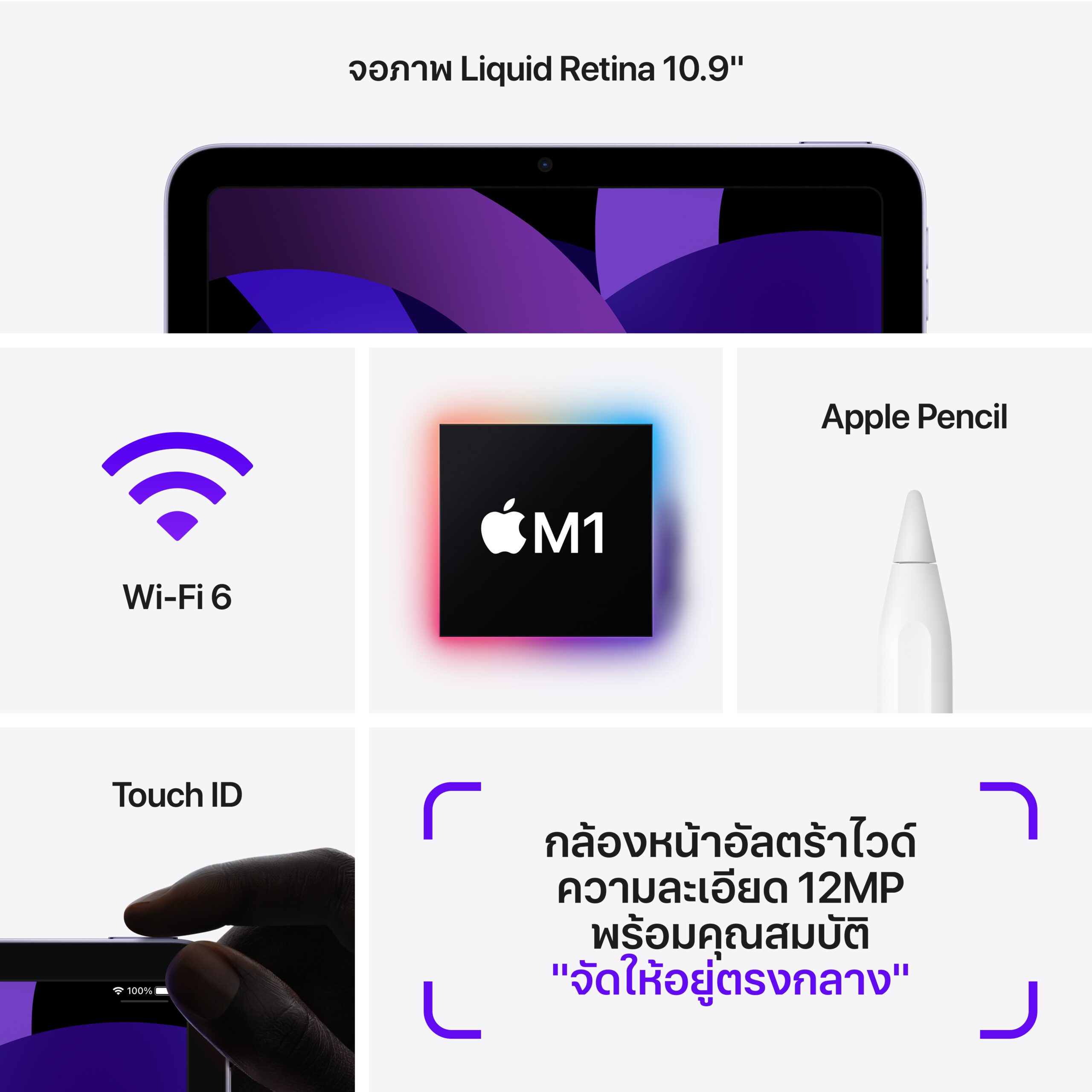 ดูข้อมูลทั้งหมดได้ที่ apple.com/th/ipad-air/specs